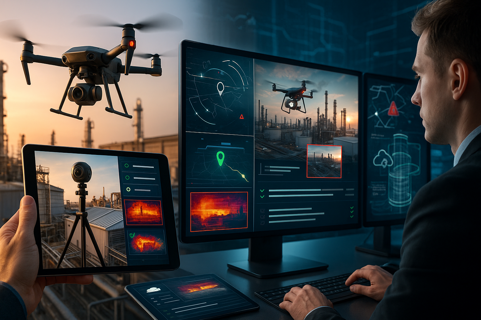 Mediante el uso de drones de última tecnología (cámaras térmicas, infrarrojas y sensores ambientales) y cámaras de alta definición, realizamos inspecciones de riesgo que nos permiten obtener documentación visual detallada, trazabilidad y evidencia técnica.